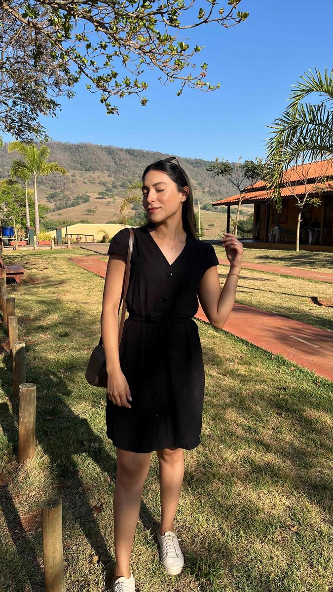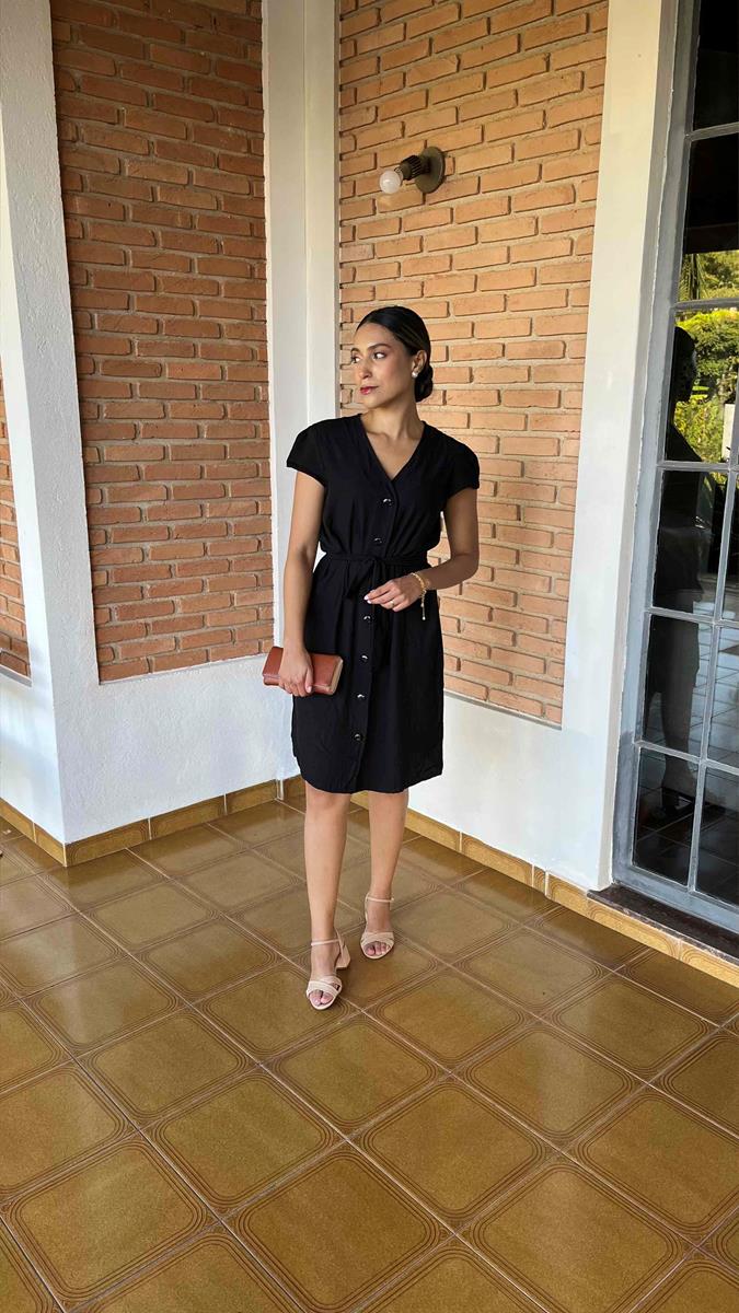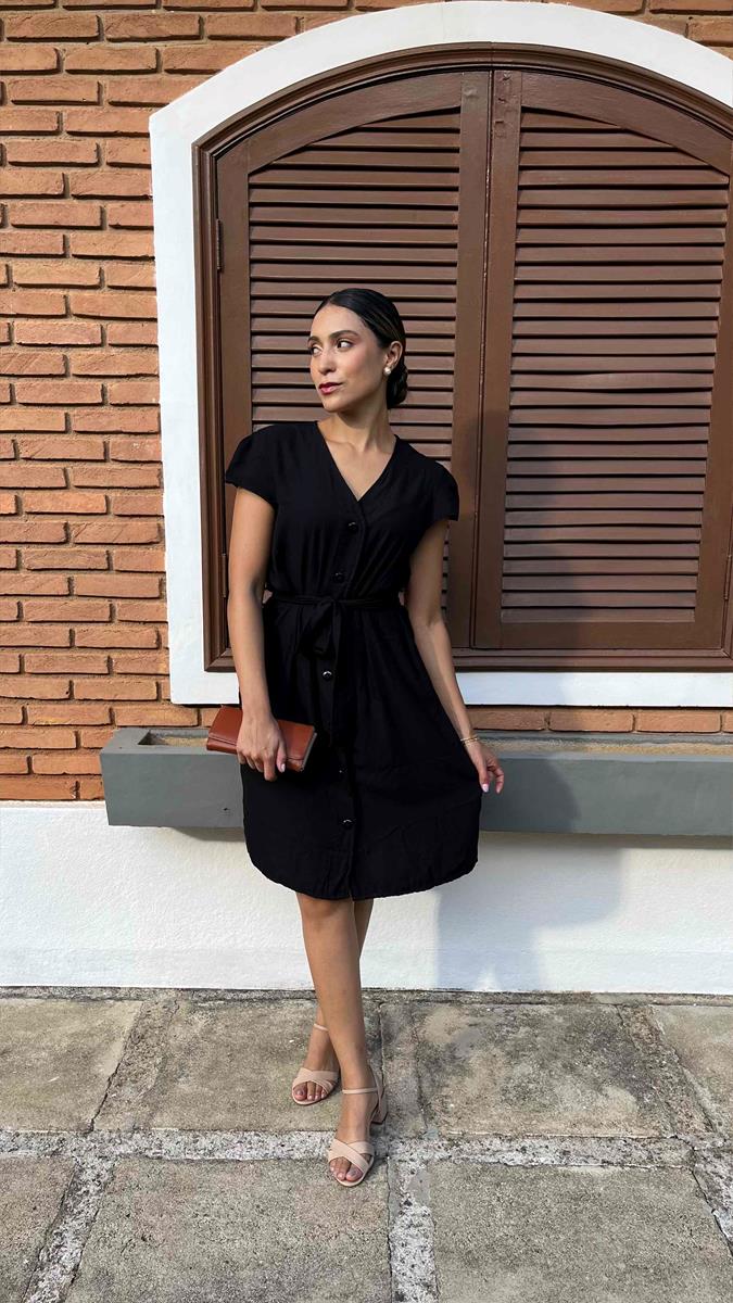 Clássico, atemporal, elegante e feminino, o Vestido Rute é feito em tecido Viscose sarjada, inspiração de manga chinesa, com botões e laço. Tamanho mídi, gola V.